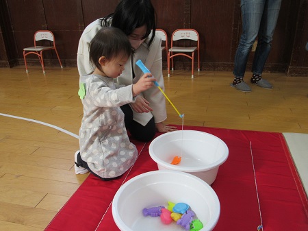 おうちの人も一緒に魚釣り♩お友だちとも一緒に楽しみました😊